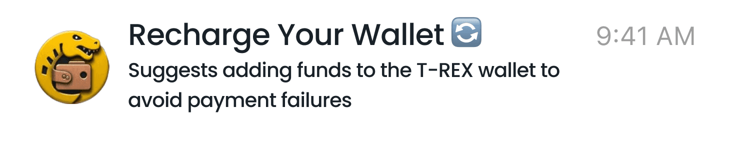 Make payments across any authorized app using your T REX wallet. No bank account needed.